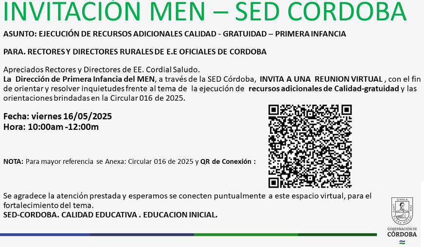 Esperamos contar con su participación en las actividades de formación y educación que se adelanta desde la SED Córdoba.