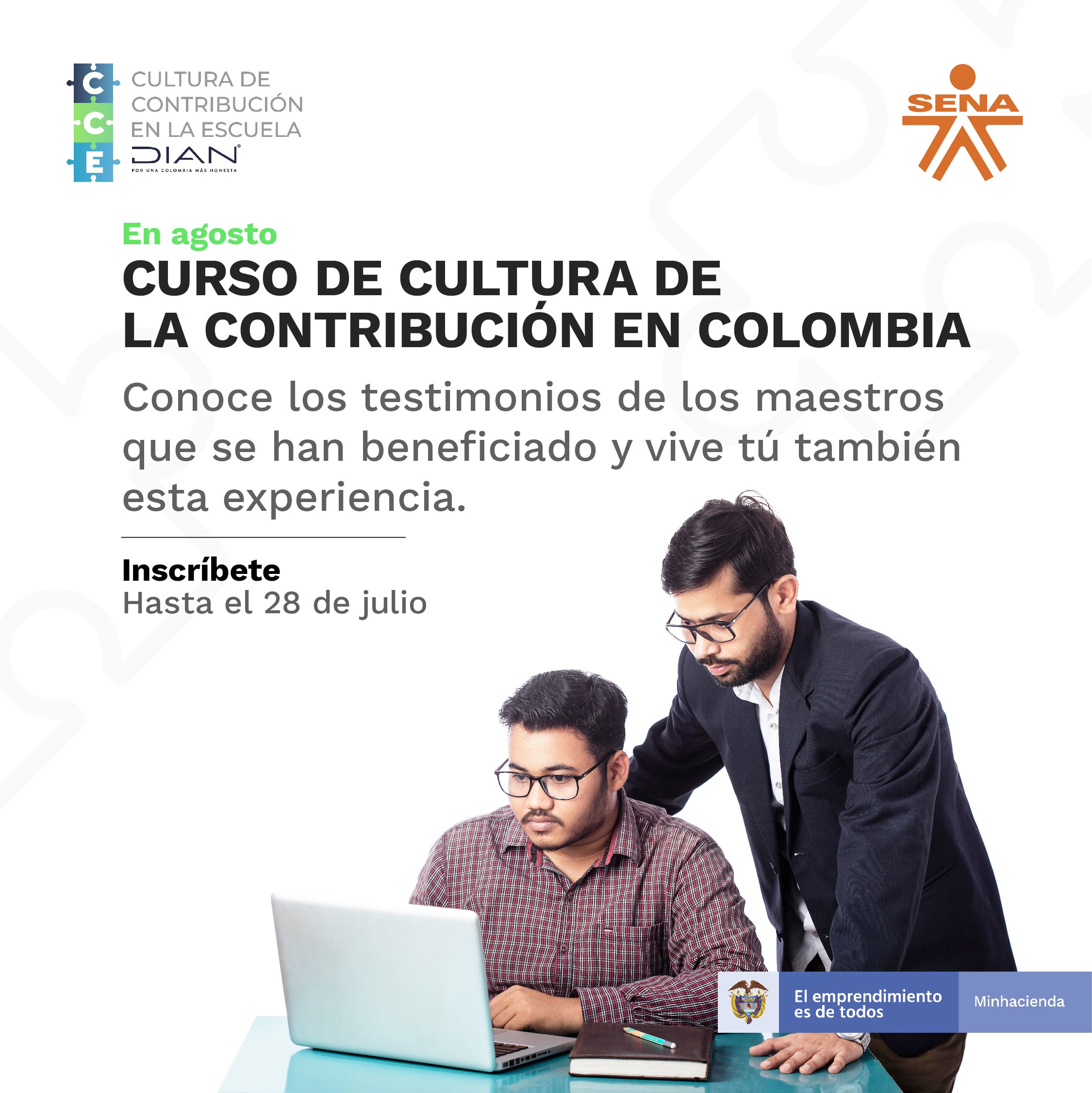 De manera atenta me permito compartirles las piezas publicitarias para promocionar el curso de Cultura de la Contribución con el SENA para el mes de agosto; fecha de cierre de las inscripciones, 28 de julio de 2022.