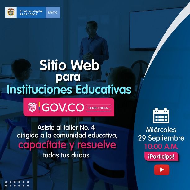 👉 Asiste al taller No. 4 el próximo miércoles 29 de septiembre a las 10:00 a.m. Capacítate y descubre el potencial del sitio web de la institución ingresando al siguiente enlace: https://youtu.be/oZ5nAFN9p10
