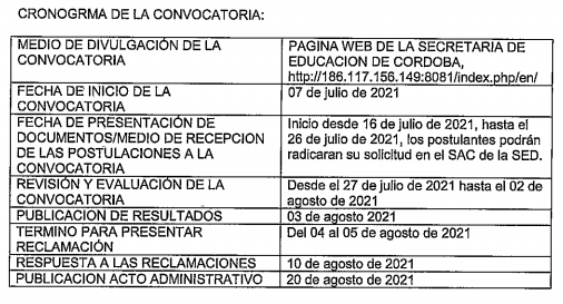 En el marco de la convocatoria, se publica la modificación de las fechas de Resultados preliminares, de el término para presentar reclamos y de la publicación del acto administrativo.