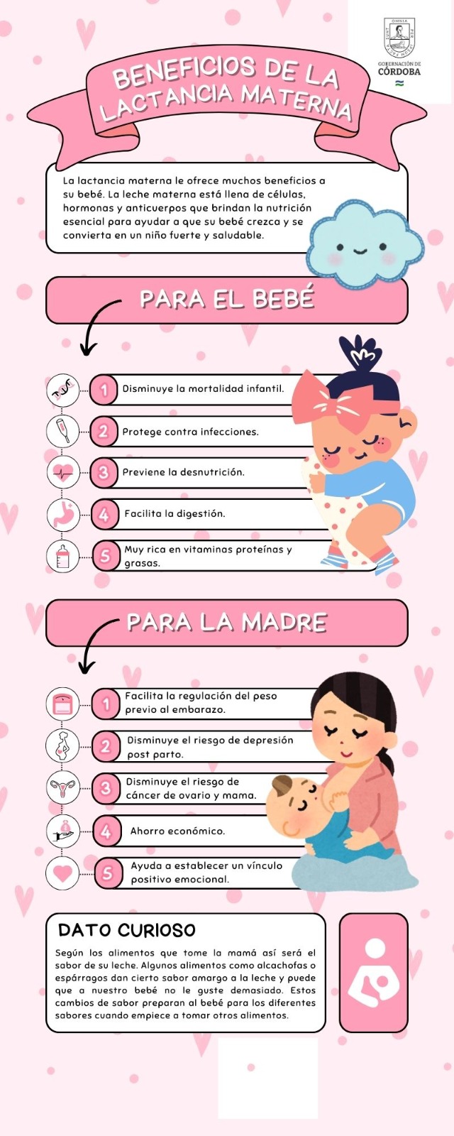Desde la Secretaría de Educación Departamental de Córdoba (SED Córdoba), hacemos un llamado urgente a promover la lactancia materna, siguiendo las recomendaciones de la Organización Mundial de la Salud (OMS) que subrayan su importancia exclusiva durante los primeros seis meses de vida y su continuación hasta los dos años o más junto con alimentos complementarios.